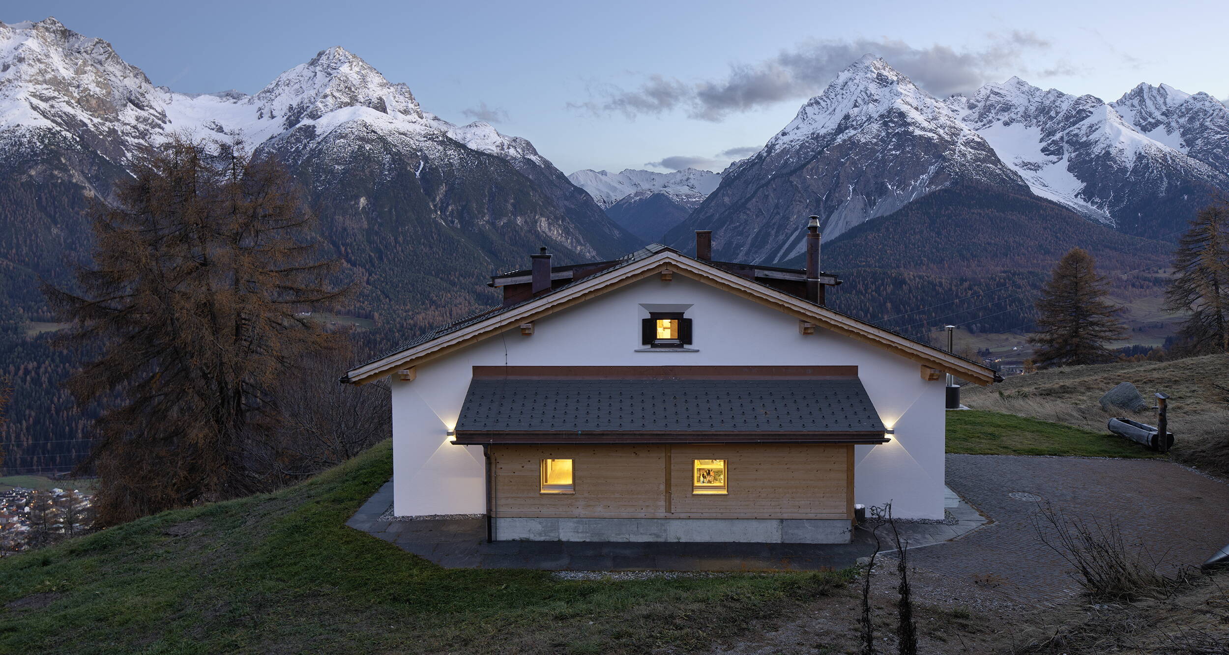 Eine ideale Kombination von Hütte und Bijoux – der Blick aus der Badewanne im Masterbedroom fantastisch. Innen Glatputz, markiges, schön verarbeitetes Altholz, superfunktionale und bis ins kleinste Detail geplante Bäder und Duschen lassen keine Wünsche offen. Von der Bauherrin liebevoll und stilsicher eingerichtet ist dieses Feriendomizil ein Ort zum veweilen und geniessen.