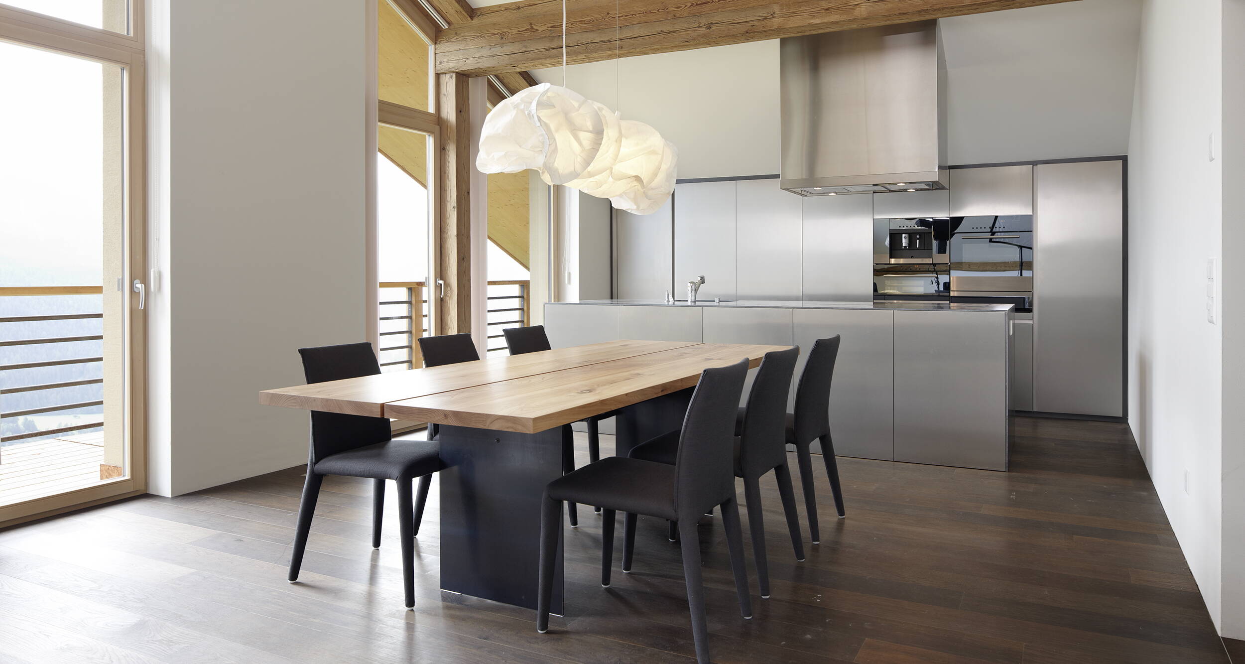 Eine Hommage an die 60er Jahre – die wunderbare Lage des Mehrfamilienhauses mit seinem eigenwilligen Erscheinungsbild dient als Grundlage für einen feinen und sehr modernen Ausbau. Grosszügige, lichtdurchflutete Räume, gruppiert um einen zentralen hellen Gang, überraschend opulente Nasszellen und die markante Stahlküche prägen die einladenden, wohnlichen Räume. Präzise gesetzte Lichter und Leuchten und die klassischen Möbel runden das Bild mit einem zeitlosen Retroschick ab.