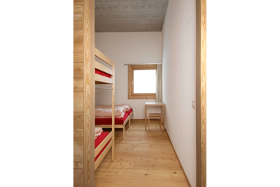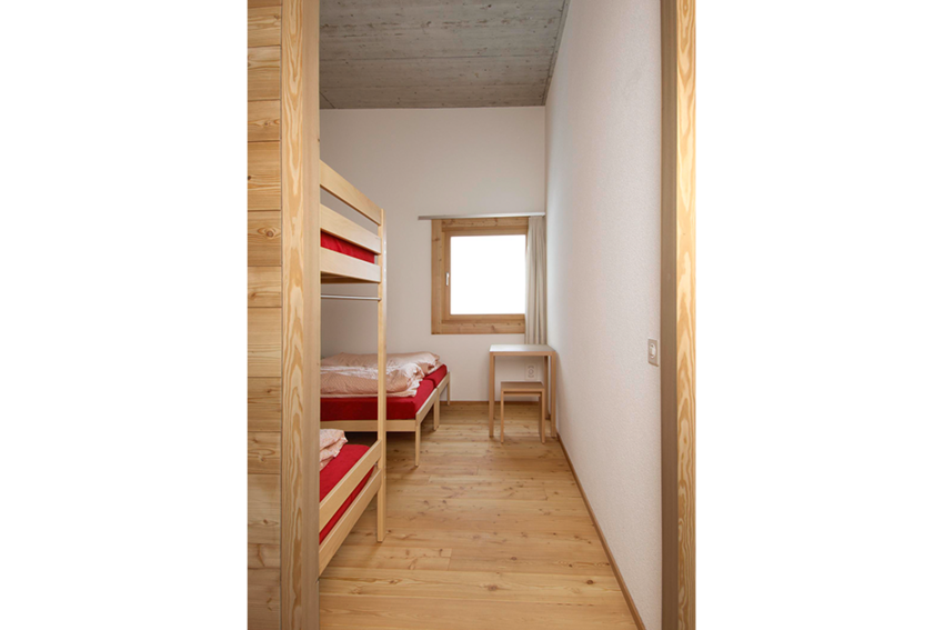 wie ein findling liegt der kompakte kubus präzise gesetzt am westlichen dorfeingang von scuol. die markanten einschnitte und die traditionellen trichterfenster, sowie die erkerförmig ausgebildeten eckfenster ergeben abwechslungsreiche ein- und ausblicke. einheimische materialien und einfache, klare details ergeben ein intensives wohlgefühl und verbinden modernste technik mit traditionellem flair, ohne kitschig zu werden. eine luxusherberge für alle junggebliebenen.