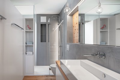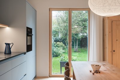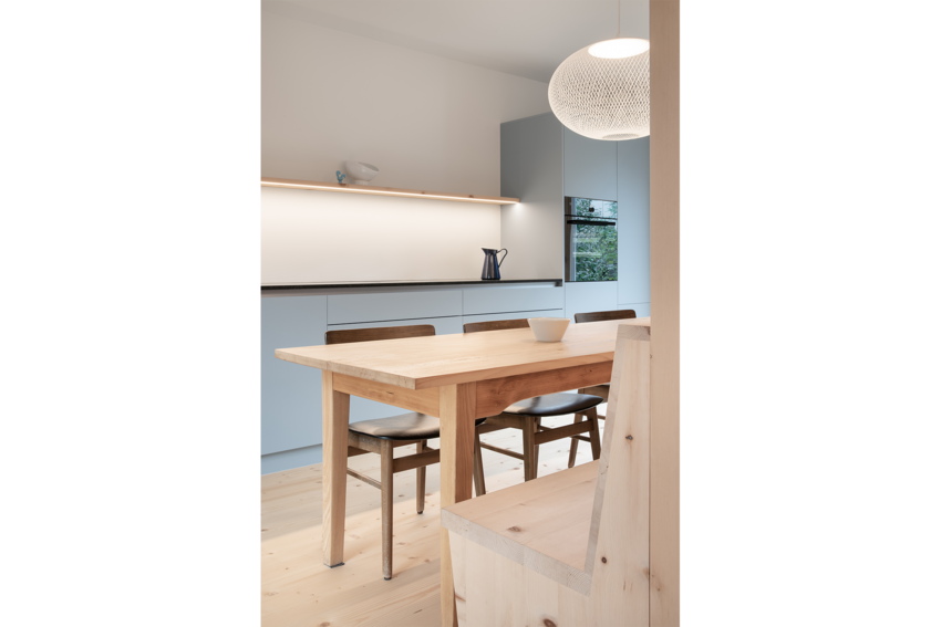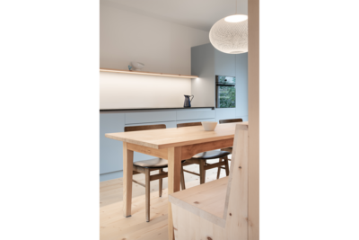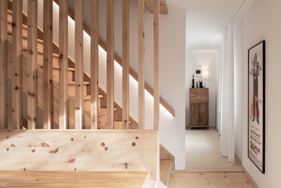 eine versteckte oase in der stadt. die seele vom haus, die gerade treppe in der mitte des gebäudes, verbindet und trennt jeweils 2 räume auf insgesamt 4 geschosse - und das mit nur 40 m2 pro geschoss. klein aber fein, mit dezente farben und natürliche materialien frönen wir das 30er jahre feeling.