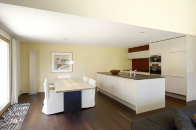 das haus mit dem neuen gesicht - das gebäude aus den 70er jahren liegt an bester lage in ftan. ein neuer anbau in holz umfasst eingang und garage im obersten geschoss, die übrigen räume ordnen sich halbgeschossig versetzt um die zentrale treppe. schlichte, edle materialien, viel liebe zum detail, präzise gesetzte fenster und modernste technik ergeben ein stimmiges gesamtkonzept, welches mit hochwertigen designermöbeln abgerundet wird.