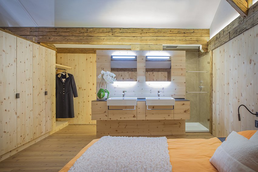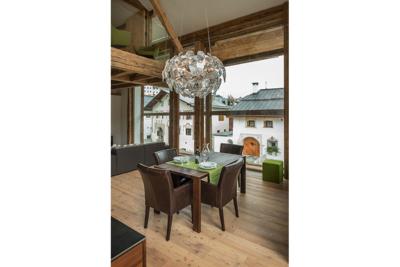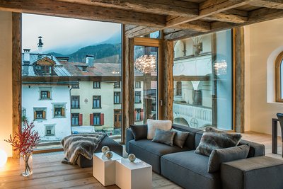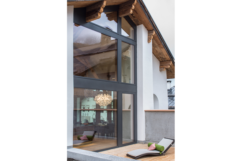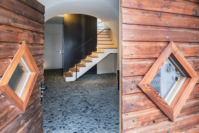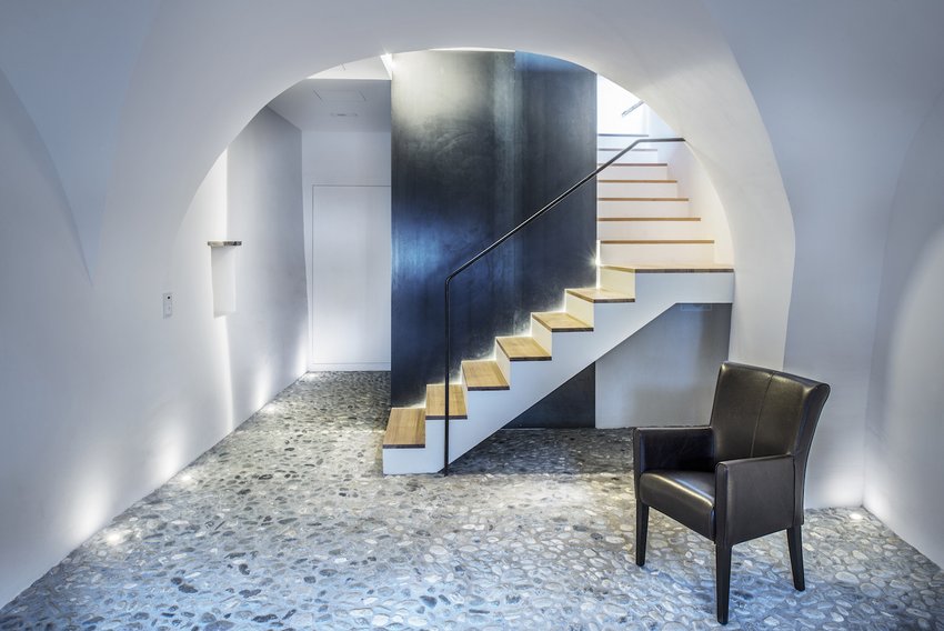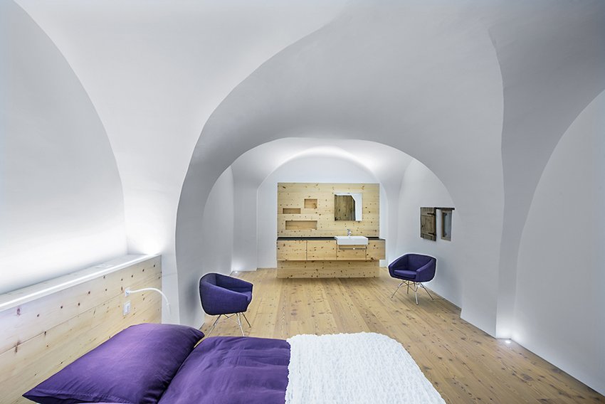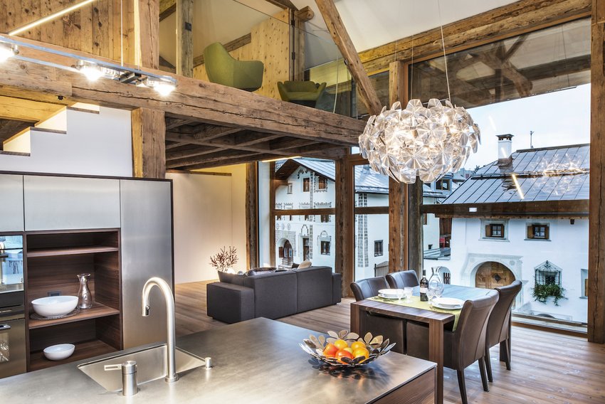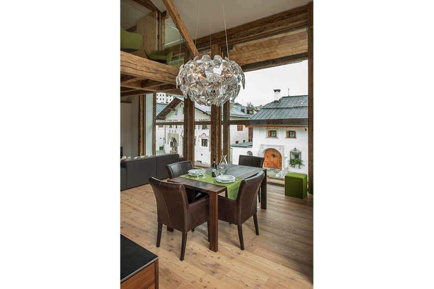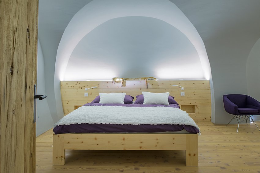 es war ein alter verlassener stall aus dem 17. jahrhundert. vielleicht war es einmal eine pferdewechselstation für das benachbarte kloster. später hausten unten kühe und oben diente er als heustall. dieser stall steht mitten im alten dorfkern von scuol. dann kam die architektin marisa feuerstein und verzauberte ihn. sie erkannte seine innewohnende schönheit. sie paarte alte tradition mit moderner architektur, natürlichen materialien sowie neuestem hightech - und schenkte ihm sein neues leuchten und unvergänglichen glanz.